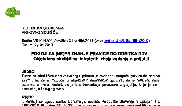 PRAVICA DO ODBITKA DDV – Dokazovanje obstoja goljufije na področju DDV s strani davčnega organa (X Ips 73/2021) 08.03.2023 13.06.2023