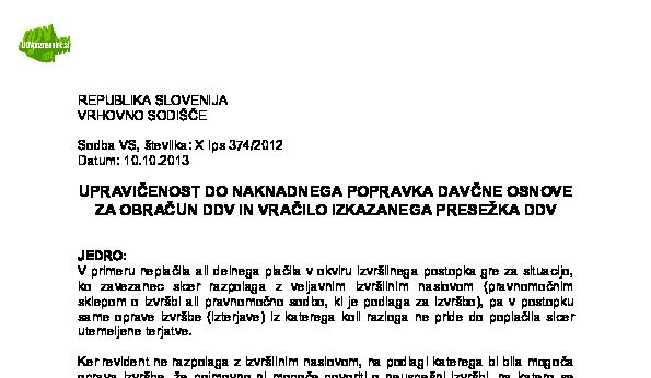 ODVETNIŠKA DEJAVNOST – Brezplačno zastopanje strank v postopkih pred sodišči – Obdavčitev prejetih povračil stroškov postopka (X Ips 8/2017) 13.09.2023 14.02.2024