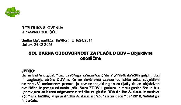 IZPOLNJEVANJE POGOJEV ZA DOBAVO BLAGA ZNOTRAJ UNIJE, OPROŠČENO PLAČILA DDV NA PODLAGI 46. ČLENA ZDDV-1 – Nepopolne CMR listine (I U 1704/2021-38) 27.11.2024 15.10.2025