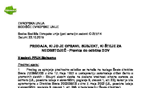 VRAČILO DDV DAVČNIM ZAVEZANCEM, KI NIMAJO SEDEŽA V DRŽAVI ČLANICI VRAČILA – GLAVNA IN POMOŽNA STORITEV – UMETNA DELITEV ENOTNE STORITVE – Neobstoj premestitve predmeta dobave (C-234/24) Brose Prievidza 23.10.2025 24.10.2025