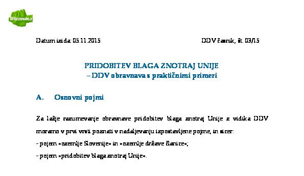 PRIDOBITEV BLAGA ZNOTRAJ UNIJE - DDV obravnava s praktičnimi primeri 06.11.2025 06.11.2025