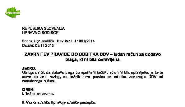 IZPOLNJEVANJE POGOJEV ZA DOBAVO BLAGA ZNOTRAJ UNIJE, OPROŠČENO PLAČILA DDV NA PODLAGI 46. ČLENA ZDDV-1 – Nepopolne CMR listine (I U 1704/2021-38) 27.11.2024 15.10.2025
