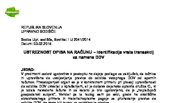 IZPOLNJEVANJE POGOJEV ZA DOBAVO BLAGA ZNOTRAJ UNIJE, OPROŠČENO PLAČILA DDV NA PODLAGI 46. ČLENA ZDDV-1 – Nepopolne CMR listine (I U 1704/2021-38) 27.11.2024 15.10.2025