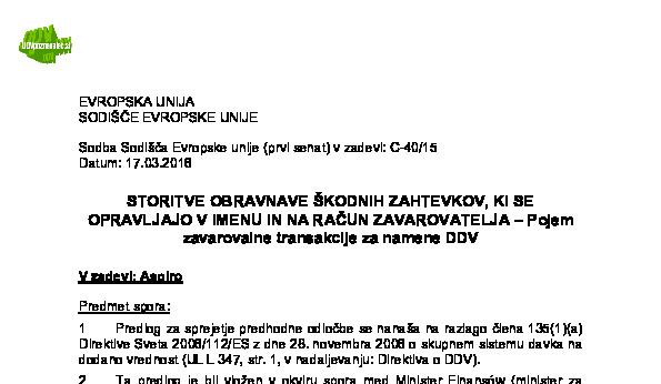 OPROSTITEV V ZVEZI Z DAJANJEM KREDITOV – OPROSTITEV V ZVEZI S FINANČNIMI TRANSAKCIJAMI – IZTERJAVA DOLGOV – Faktoring s prodajo terjatev – Faktoring z zastavno pravico (C-332/24) Kosmiro 23.10.2025 28.10.2025