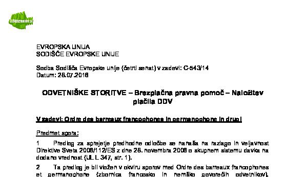 BREZPLAČNA PRAVNA POMOČ, KI JO ODVETNIK ZAGOTOVI STRANKI V SODNEM POSTOPKU – PLAČILO NAGRADE TEGA ODVETNIKA S STRANI PORAŽENE NASPROTNE STRANKE – Transakcije, ki so predmet DDV – Opravljanje storitev za plačilo (C-744/23) T.P.T. 23.10.2025 29.10.2025