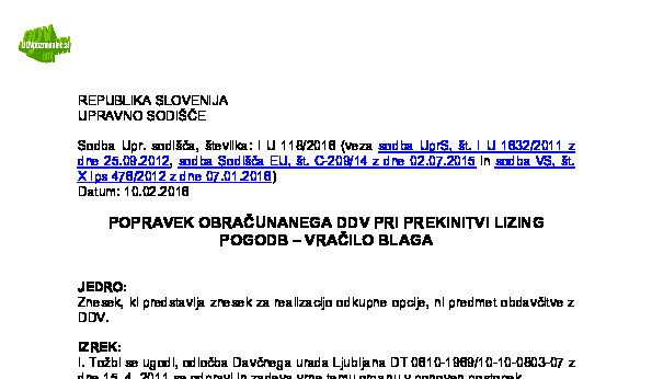 IZPOLNJEVANJE POGOJEV ZA DOBAVO BLAGA ZNOTRAJ UNIJE, OPROŠČENO PLAČILA DDV NA PODLAGI 46. ČLENA ZDDV-1 – Nepopolne CMR listine (I U 1704/2021-38) 27.11.2024 15.10.2025