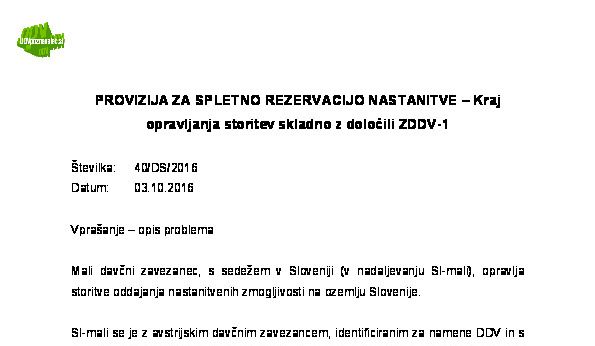 MALI DAVČNI ZAVEZANEC PREJME RAČUN TUJEGA DAVČNEGA ZAVEZANCA ZA PROVIZIJO PRI SPLETNIH REZERVACIJAH NASTANITEV – Določitev kraja opravljanja storitev in plačnika DDV v skladu z določili ZDDV-1 21.11.2025 21.11.2025