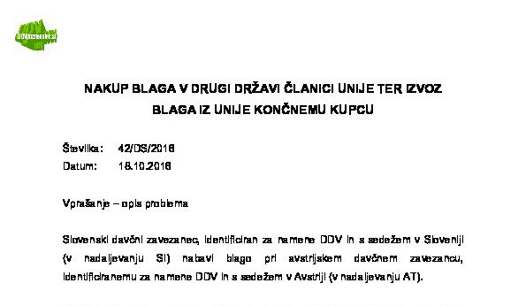 PRIDOBITEV IDENTIFIKACIJSKE ŠTEVILKE ZA DDV PRI MALEM DAVČNEM ZAVEZANCU – NAKUPI RABLJENEGA BLAGA OD OBDAVČLJIVIH PREPRODAJALCEV IZ DRUGIH DRŽAV ČLANIC EU – Ali preseganje nakupov v vrednosti 10.000 EUR pomeni obveznost za identifikacijo za DDV? 27.11.2025 27.11.2025