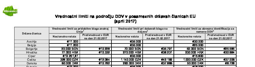 Vrednostni limiti za registracijo na področju DDV v posameznih državah članicah EU in državah izven Unije ter pragi za poročanje Intrastat (na dan 01.01.2025) 16.01.2025
