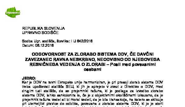 IZPOLNJEVANJE POGOJEV ZA DOBAVO BLAGA ZNOTRAJ UNIJE, OPROŠČENO PLAČILA DDV NA PODLAGI 46. ČLENA ZDDV-1 – Nepopolne CMR listine (I U 1704/2021-38) 27.11.2024 15.10.2025