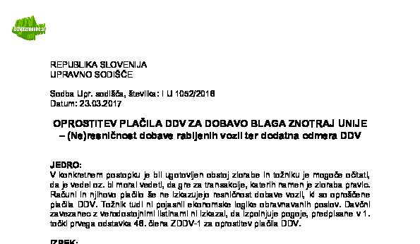 IZPOLNJEVANJE POGOJEV ZA DOBAVO BLAGA ZNOTRAJ UNIJE, OPROŠČENO PLAČILA DDV NA PODLAGI 46. ČLENA ZDDV-1 – Nepopolne CMR listine (I U 1704/2021-38) 27.11.2024 15.10.2025