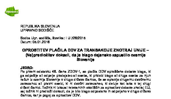 IZPOLNJEVANJE POGOJEV ZA DOBAVO BLAGA ZNOTRAJ UNIJE, OPROŠČENO PLAČILA DDV NA PODLAGI 46. ČLENA ZDDV-1 – Nepopolne CMR listine (I U 1704/2021-38) 27.11.2024 15.10.2025