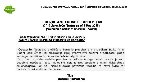 ŠVICA - Pravilnik o Zakonu o davku na dodano vrednost (Ordinance on Value Added Tax) 01.04.2019 13.01.2021