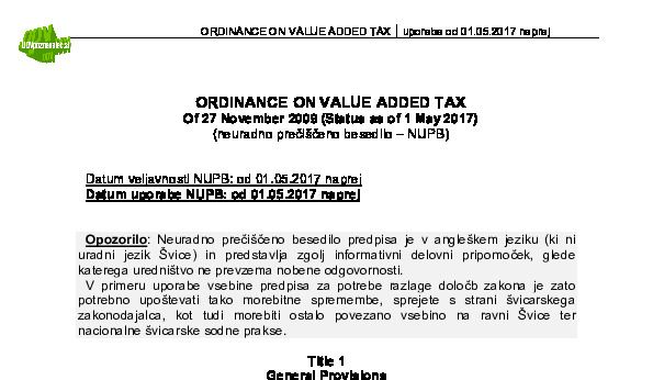 ŠVICA - Pravilnik o Zakonu o davku na dodano vrednost (Ordinance on Value Added Tax) 01.04.2019 13.01.2021