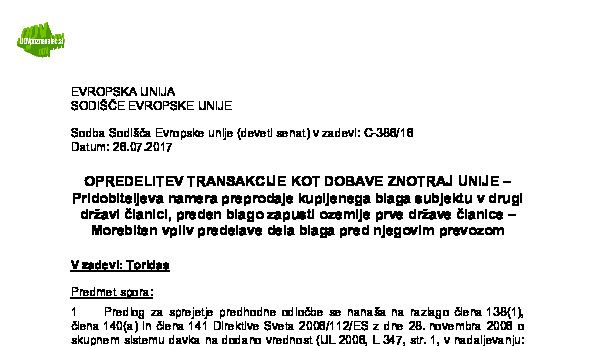 OPROSTITEV V ZVEZI Z DAJANJEM KREDITOV – OPROSTITEV V ZVEZI S FINANČNIMI TRANSAKCIJAMI – IZTERJAVA DOLGOV – Faktoring s prodajo terjatev – Faktoring z zastavno pravico (C-332/24) Kosmiro 23.10.2025 28.10.2025