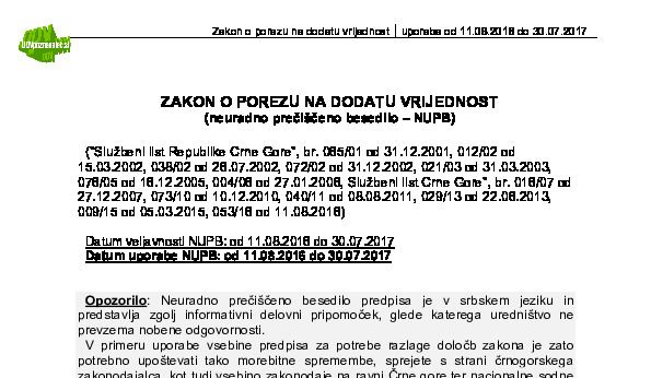 SRBIJA - Zakon o porezu na dodatu vrednost (ZPDV) 01.01.2025 14.11.2025