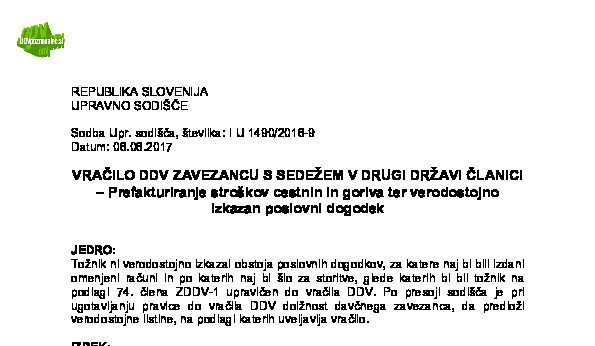 IZPOLNJEVANJE POGOJEV ZA DOBAVO BLAGA ZNOTRAJ UNIJE, OPROŠČENO PLAČILA DDV NA PODLAGI 46. ČLENA ZDDV-1 – Nepopolne CMR listine (I U 1704/2021-38) 27.11.2024 15.10.2025