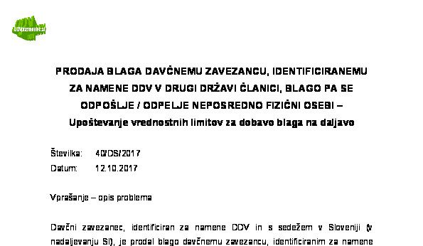 PRIDOBITEV IDENTIFIKACIJSKE ŠTEVILKE ZA DDV PRI MALEM DAVČNEM ZAVEZANCU – NAKUPI RABLJENEGA BLAGA OD OBDAVČLJIVIH PREPRODAJALCEV IZ DRUGIH DRŽAV ČLANIC EU – Ali preseganje nakupov v vrednosti 10.000 EUR pomeni obveznost za identifikacijo za DDV? 27.11.2025 27.11.2025