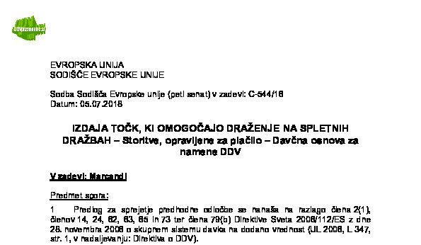 Članek nima posebnosti! Sklepni predlogi - C-544/16 (Marcandi).doc
