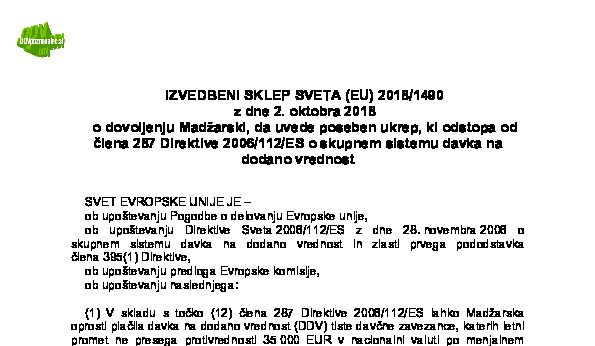 IZVEDBENI SKLEP SVETA (EU) 2024/2884 z dne 5. novembra 2024 o spremembi Izvedbenega sklepa (EU) 2018/1994 o dovoljenju Hrvaški, da uvede posebni ukrep, ki odstopa od točke (a) člena 26(1) ter členov 168 in 168a Direktive 2006/112/ES o skupnem sistemu DDV 14.11.2024