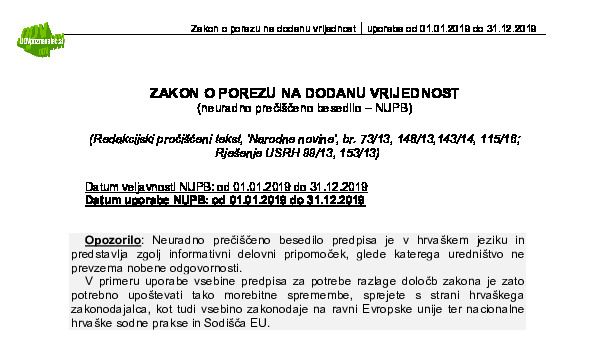 HRVAŠKA - Zakon o porezu na dodanu vrijednost (ZPDV) 01.01.2024 02.05.2024