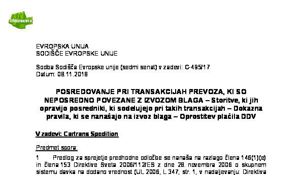Članek nima posebnosti! Sklepni predlogi - C-495/17 (Cartrans Spedition).doc