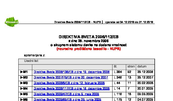 DIREKTIVA SVETA 2006/112/ES z dne 28.11.2006 o skupnem sistemu DDV (neuradno prečiščeno besedilo - NUPB) 14.04.2025 26.06.2025
