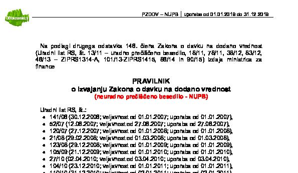 Pravilnik o izvajanju Zakona o davku na dodano vrednost (PZDDV - neuradno prečiščeno besedilo) 01.01.2025 [!] 30.12.2024