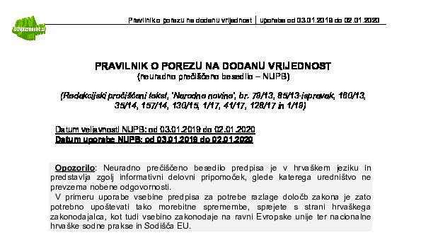 HRVAŠKA - Pravilnik o porezu na dodanu vrijednost 12.04.2025 08.05.2025