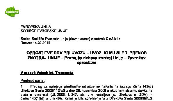 Članek nima posebnosti! Sklepni predlogi - C-531-17 (Vetsch Int. Transporte).doc