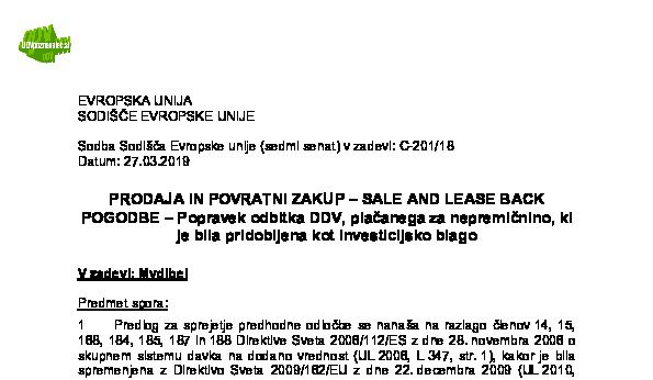 OPROSTITEV V ZVEZI Z DAJANJEM KREDITOV – OPROSTITEV V ZVEZI S FINANČNIMI TRANSAKCIJAMI – IZTERJAVA DOLGOV – Faktoring s prodajo terjatev – Faktoring z zastavno pravico (C-232/24) Kosmiro 23.10.2025 28.10.2025