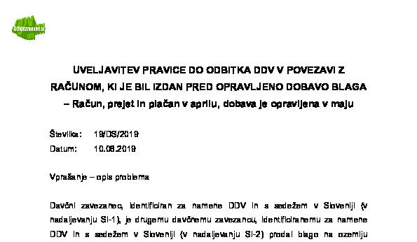 UVELJAVITEV PRAVICE DO ODBITKA DDV PO PRENEHANJU IDENTIFIKACIJE ZA NAMENE DDV ZA TRANSAKCIJE, OPRAVLJENE DO PRENEHANJA IDENTIFIKACIJE ZA NAMENE DDV – PREHOD IZ SPLOŠNE NA POSEBNO UREDITEV ZA MALE DAVČNE ZAVEZANCE 13.11.2025 13.11.2025