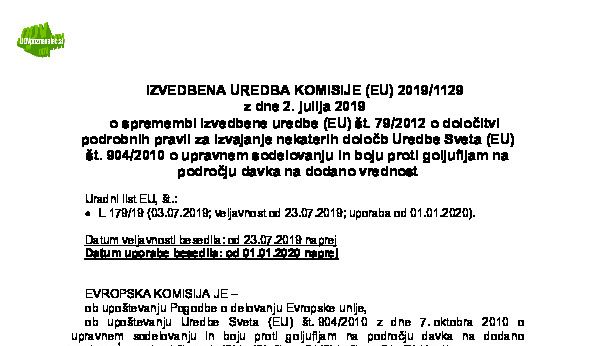 IZVEDBENA UREDBA SVETA (EU) št. 282/2011 z dne 15. marca 2011 o določitvi izvedbenih ukrepov za Direktivo 2006/112/ES o skupnem sistemu davka na dodano vrednost (neuradno prečiščeno besedilo - NUPB) 14.04.2025 02.07.2025