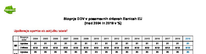 Spreminjanje davčnih stopenj DDV v posameznih državah članicah EU (stanje na dan 01.01.2020) 02.07.2020