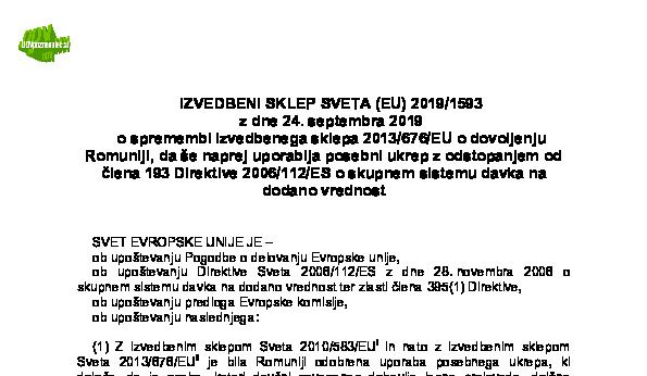 IZVEDBENI SKLEP SVETA (EU) 2024/2884 z dne 5. novembra 2024 o spremembi Izvedbenega sklepa (EU) 2018/1994 o dovoljenju Hrvaški, da uvede posebni ukrep, ki odstopa od točke (a) člena 26(1) ter členov 168 in 168a Direktive 2006/112/ES o skupnem sistemu DDV 14.11.2024