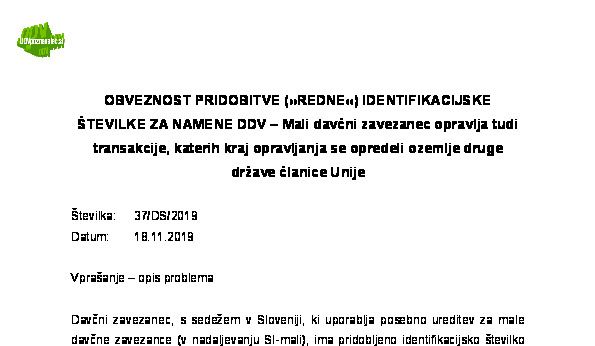 PRIDOBITEV IDENTIFIKACIJSKE ŠTEVILKE ZA DDV PRI MALEM DAVČNEM ZAVEZANCU – NAKUPI RABLJENEGA BLAGA OD OBDAVČLJIVIH PREPRODAJALCEV IZ DRUGIH DRŽAV ČLANIC EU – Ali preseganje nakupov v vrednosti 10.000 EUR pomeni obveznost za identifikacijo za DDV? 27.11.2025 27.11.2025
