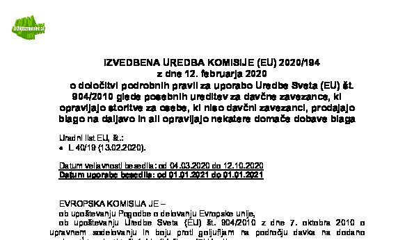 Izvedbena uredba Komisije (EU) se je spremenila še preden se je začela uporabljati.