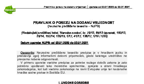 HRVAŠKA - Pravilnik o porezu na dodanu vrijednost 12.04.2025 08.05.2025