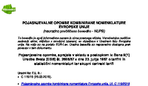 Pojasnjevalne opombe Kombinirane nomenklature Evropske Unije (neuradno prečiščeno besedilo - NUPB) 19.08.2021 17.11.2025