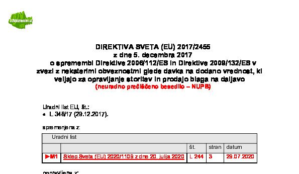 DIREKTIVA SVETA (EU) 2025/516 z dne 11. marca 2025 o spremembi Direktive 2006/112/ES glede pravil o DDV za digitalno dobo 14.04.2025 [!] 26.03.2025