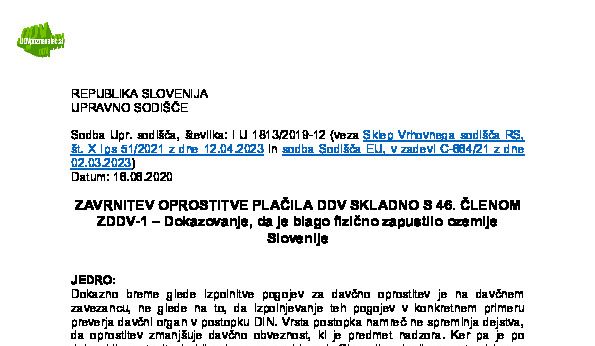 IZPOLNJEVANJE POGOJEV ZA DOBAVO BLAGA ZNOTRAJ UNIJE, OPROŠČENO PLAČILA DDV NA PODLAGI 46. ČLENA ZDDV-1 – Nepopolne CMR listine (I U 1704/2021-38) 27.11.2024 15.10.2025