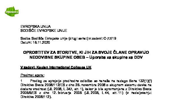 Članek nima posebnosti! Sklepni predlogi - C-77/19 (Kaplan International Colleges UK).doc