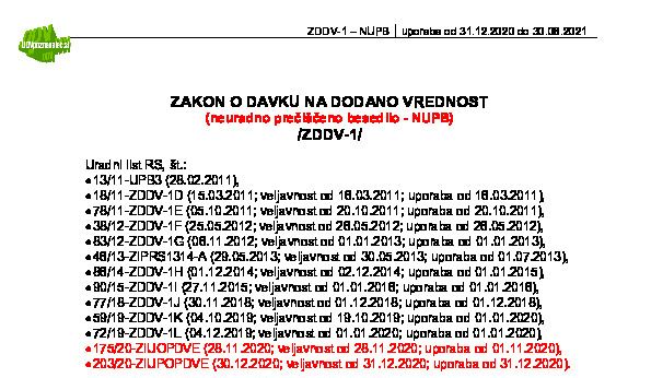 ZAKON O DAVKU NA DODANO VREDNOST (ZDDV-1 - neuradno prečiščeno besedilo) 06.12.2023 31.12.2023 [!] 05.12.2023