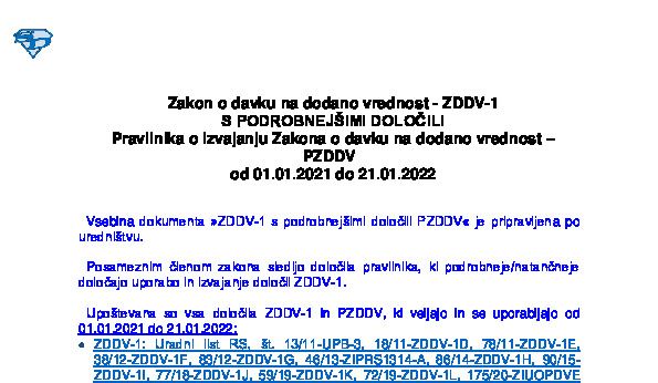 ZDDV-1 s podrobnejšimi določili PZDDV - uporaba od 22.01.2022 do 29.06.2022 15.03.2022
