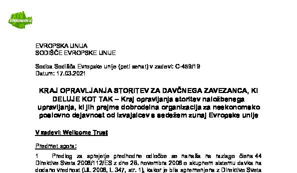 Članek nima posebnosti! Sklepni predlogi - C-459/19 (Wellcome Trust).doc