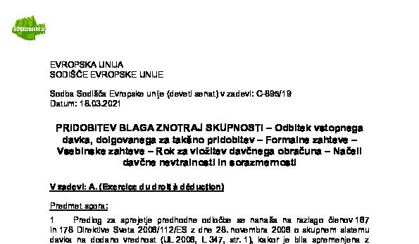 OPROSTITEV V ZVEZI Z DAJANJEM KREDITOV – OPROSTITEV V ZVEZI S FINANČNIMI TRANSAKCIJAMI – IZTERJAVA DOLGOV – Faktoring s prodajo terjatev – Faktoring z zastavno pravico (C-332/24) Kosmiro 23.10.2025 28.10.2025