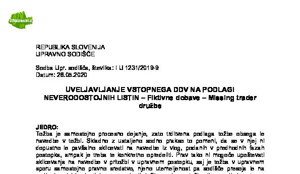IZPOLNJEVANJE POGOJEV ZA DOBAVO BLAGA ZNOTRAJ UNIJE, OPROŠČENO PLAČILA DDV NA PODLAGI 46. ČLENA ZDDV-1 – Nepopolne CMR listine (I U 1704/2021-38) 27.11.2024 15.10.2025