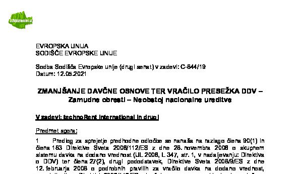 Članek nima posebnosti! Sklepni predlogi - C-844/19 (technoRent International).doc