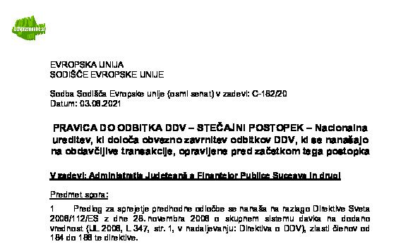 VRAČILO DDV DAVČNIM ZAVEZANCEM, KI NIMAJO SEDEŽA V DRŽAVI ČLANICI VRAČILA – GLAVNA IN POMOŽNA STORITEV – UMETNA DELITEV ENOTNE STORITVE – Neobstoj premestitve predmeta dobave (C-234/24) Brose Prievidza 23.10.2025 24.10.2025