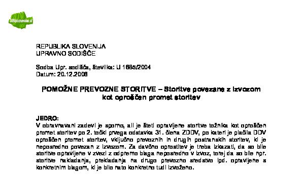 IZPOLNJEVANJE POGOJEV ZA DOBAVO BLAGA ZNOTRAJ UNIJE, OPROŠČENO PLAČILA DDV NA PODLAGI 46. ČLENA ZDDV-1 – Nepopolne CMR listine (I U 1704/2021-38) 27.11.2024 15.10.2025